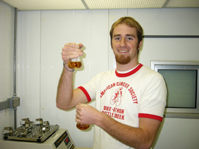 then a Chemistry major (class of 2006) worked in the lab this past summer as a Howard Hughes Medical Institute Student Research Fellow (Kalamazoo College). His project was entitled "Mapping Neuronal Nitric Oxide Synthase/Calmodulin Interactions by Limited Proteolysis using Chymotrypsin and MALDI-TOF-TOF Mass Spectrometry". His work will be presented in combination with Mr. Andy Rosko's at the 36th Great Lakes Regional Meeting of the American Chemistry Society, Oct. 17-20, Peoria, IL.