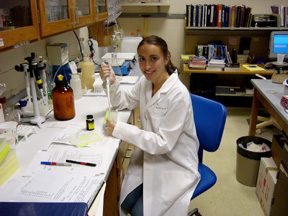 a Kalamazoo College Chemistry major (class of 2005) is planning on pursuing graduate studies in Chemistry after graduation. Her SIP project entitled "Analysis of the BV2 Proteome in Response to Select Cell Activators by 2D-gel Electrophoresis and MALDI TOF/TOF Mass Spectrometry" was conducted this past summer. This work is a continuation of a project begun in collaboration with Dr. D. Blaine Moore (Kalamazoo College) this past year. Her studies have resulted in very exciting information (Manuscript in preparation). Rachel's data will be presented at the 36th Great Lakes Regional Meeting of the American Chemistry Society, Oct. 17-20, Peoria, IL.